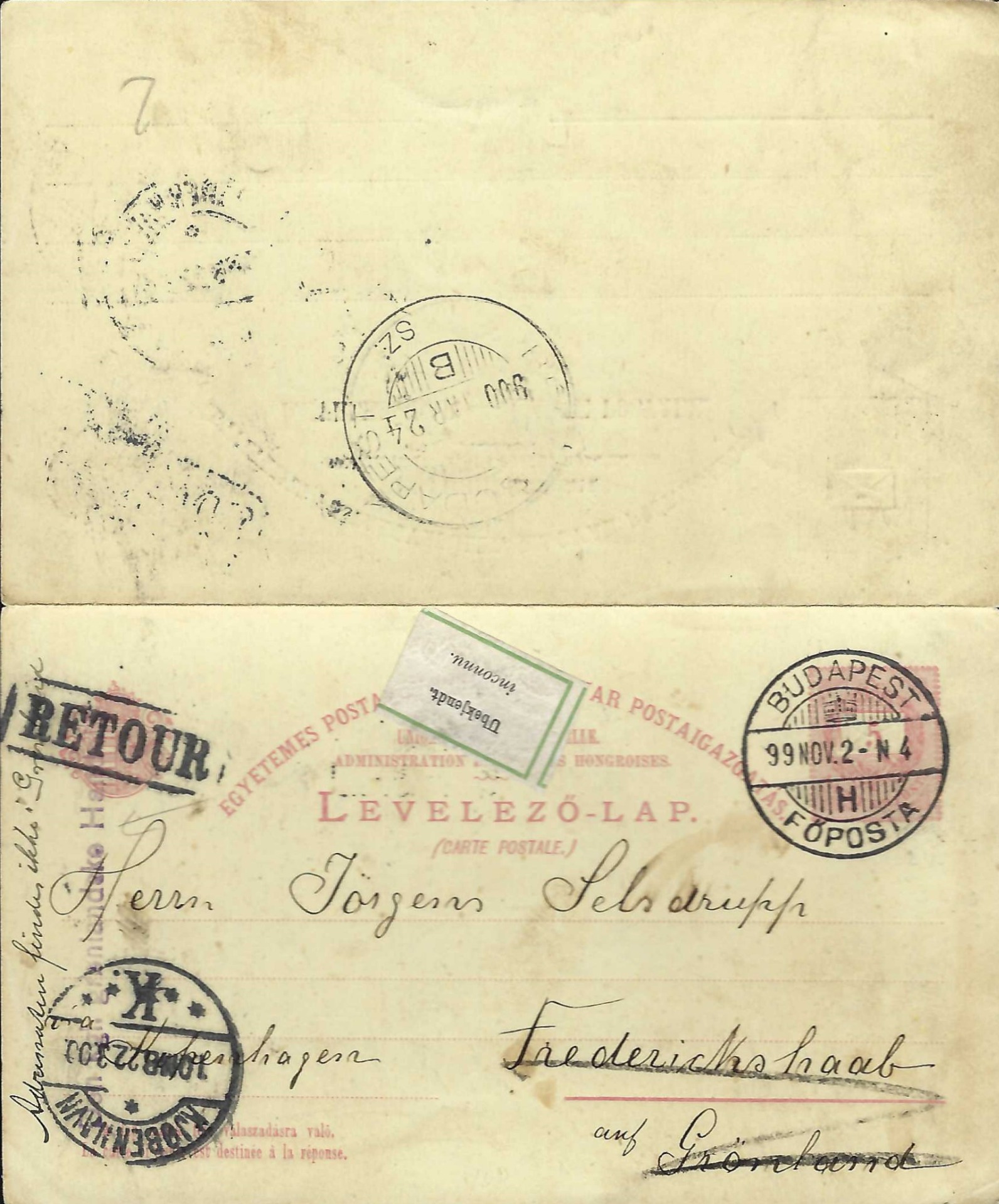 Udstedbestyren har benyttet stedets stempel (et avane stempel) til at angive afsendelses sted.
