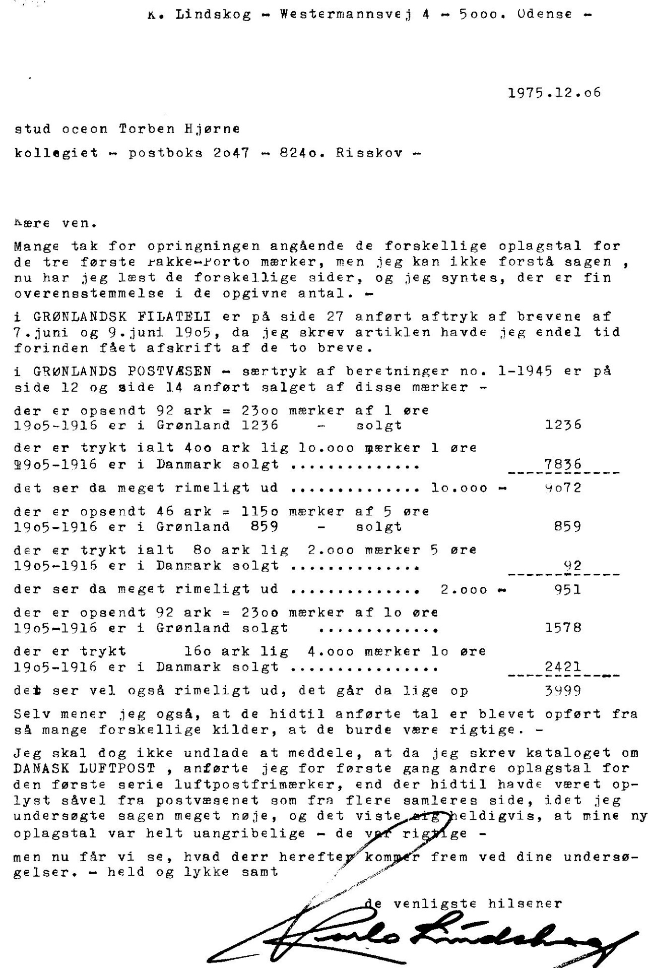 Karlo Lindskog oplyser at der 1912 blev udgivet et hidtil ukendt oplag af 5 øre (på 5.000). Dette oplag er ikke nævnt i KGH's officielle statistik hvor salget 1905/16 i København udgjorde 92 styk (tabel xxx). Antallet er bemærkelsesværdigt da jeg på mine fotokopier havde afbillede flere 5 øre på adressebreve fra samme periode. Det vi-ste sig at salget faktisk skulle rettes til 10.092.