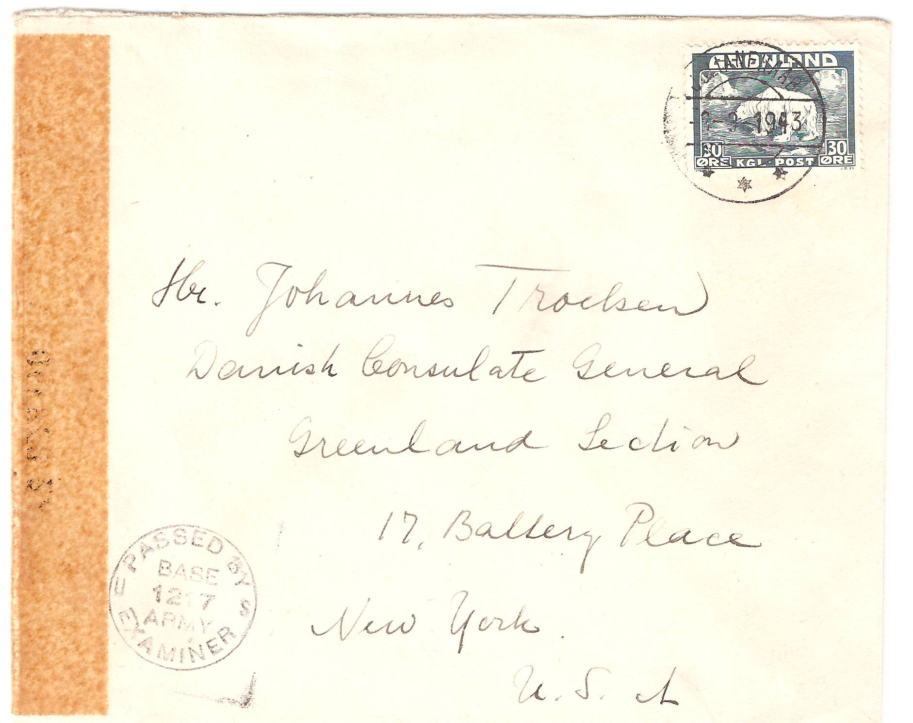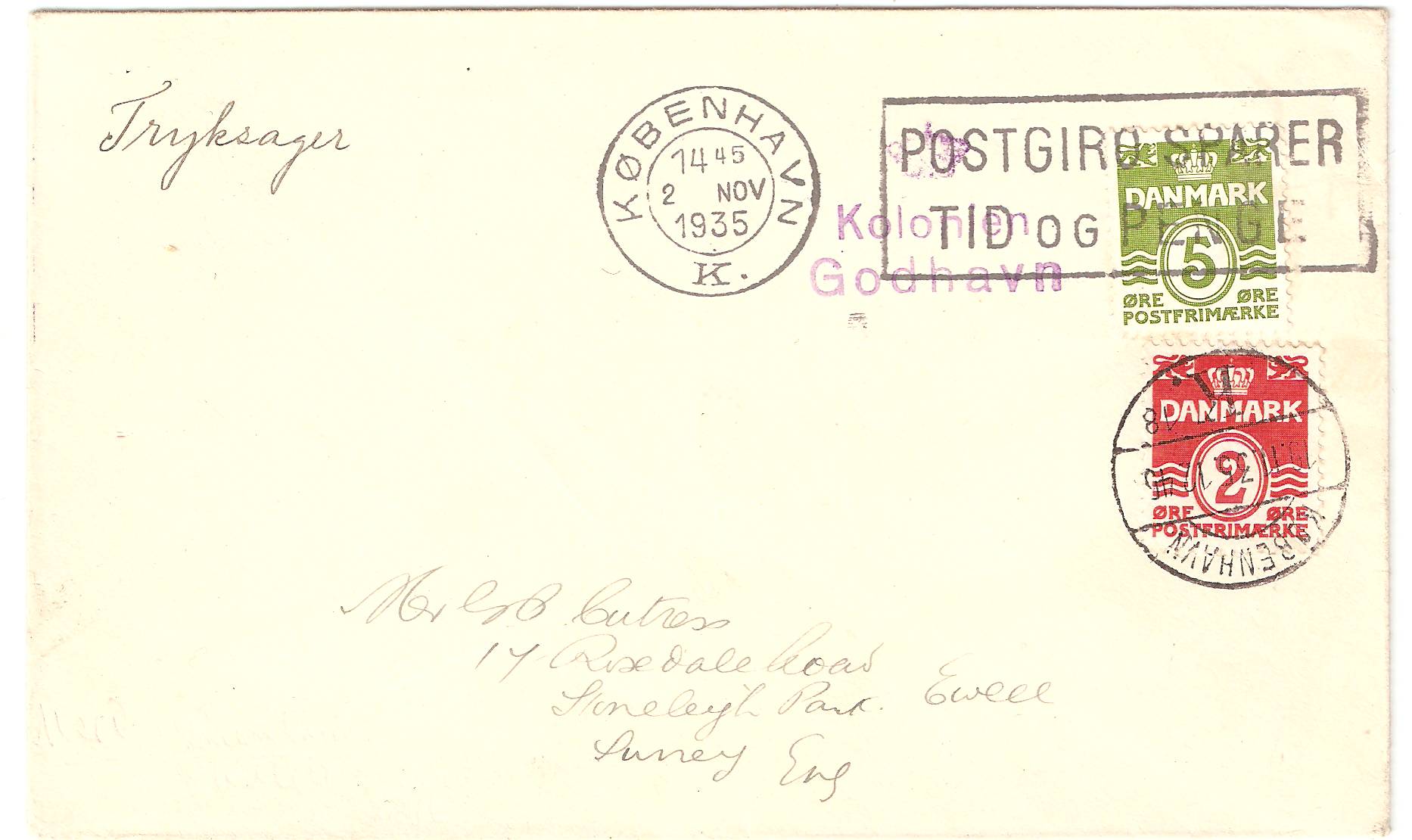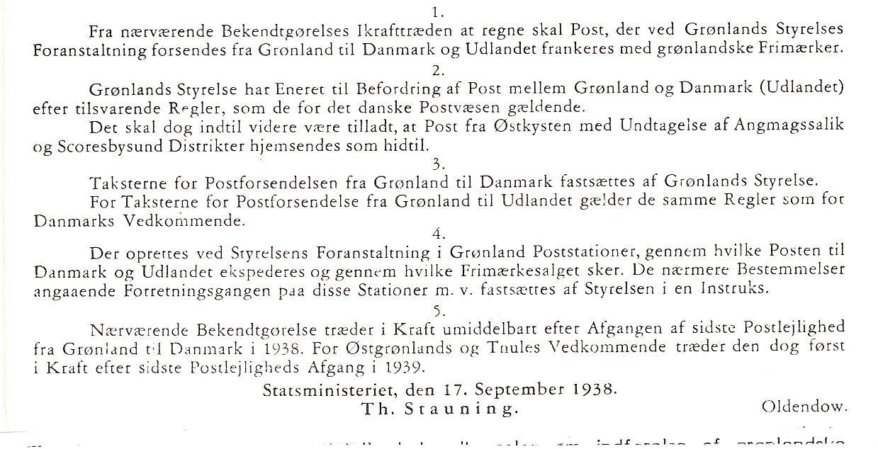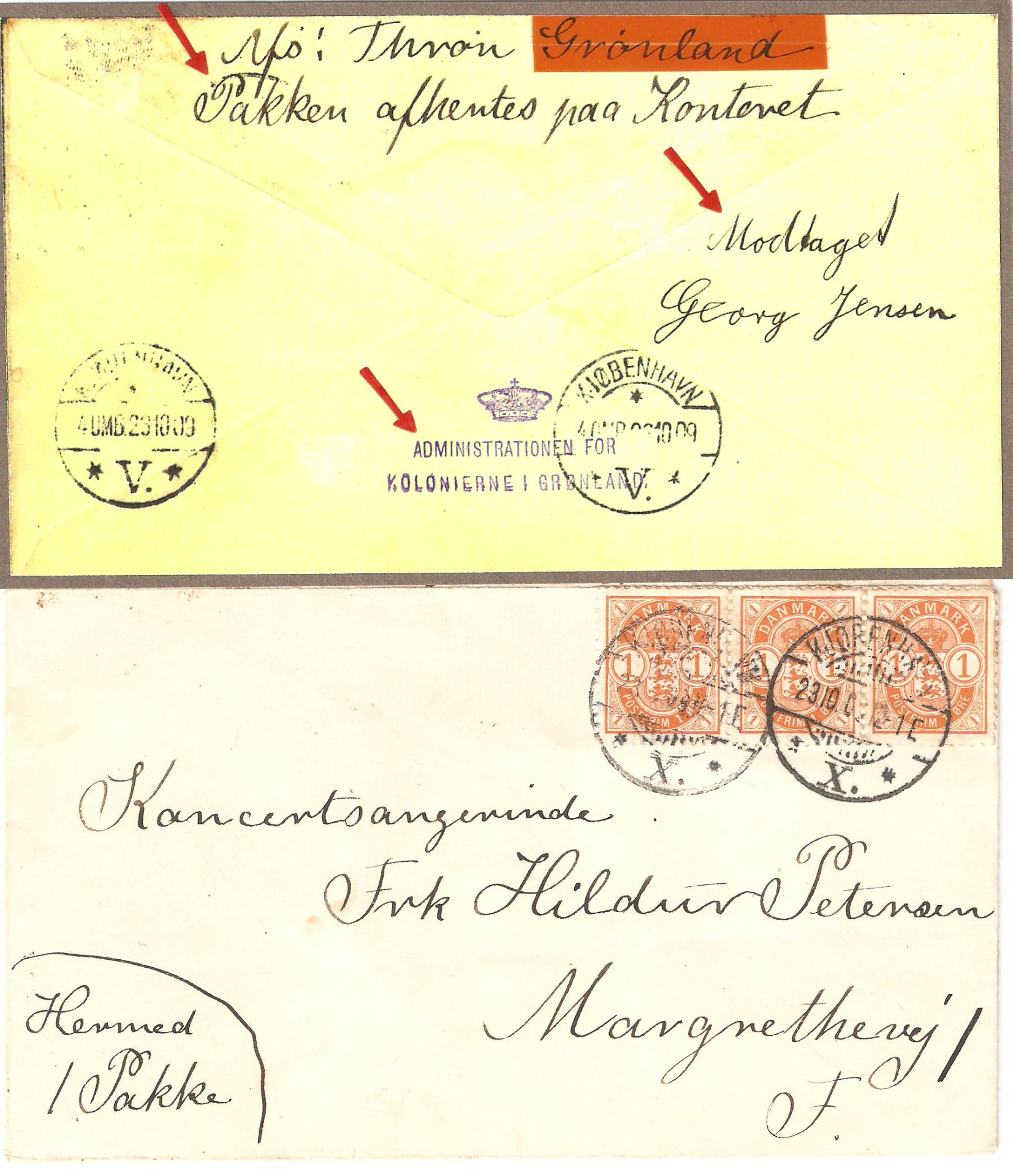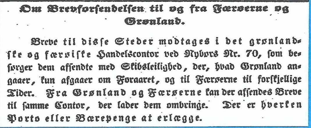 Før telegrafi bliver Grønland orienteret per skib. Afsendere undgik straftporto da KGH sidestempler post med en særlig stempel, Fra Grønland Sættes ikke i porto.