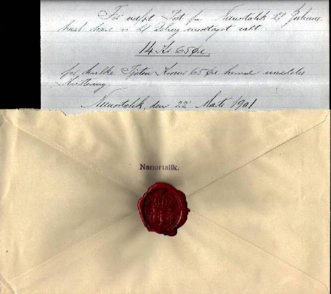 Kvittering for betaling af en kajakpost 1901 fra Nanorta-lik til Julianehaab.
