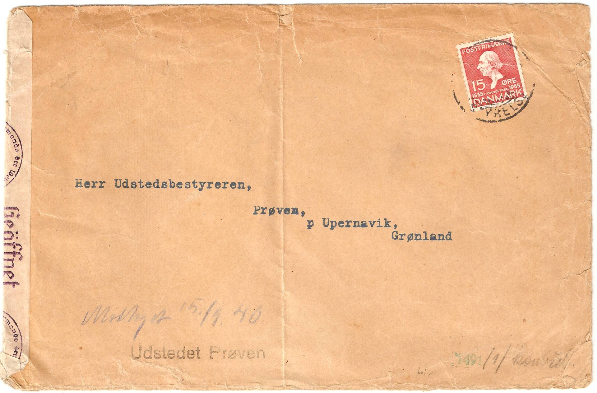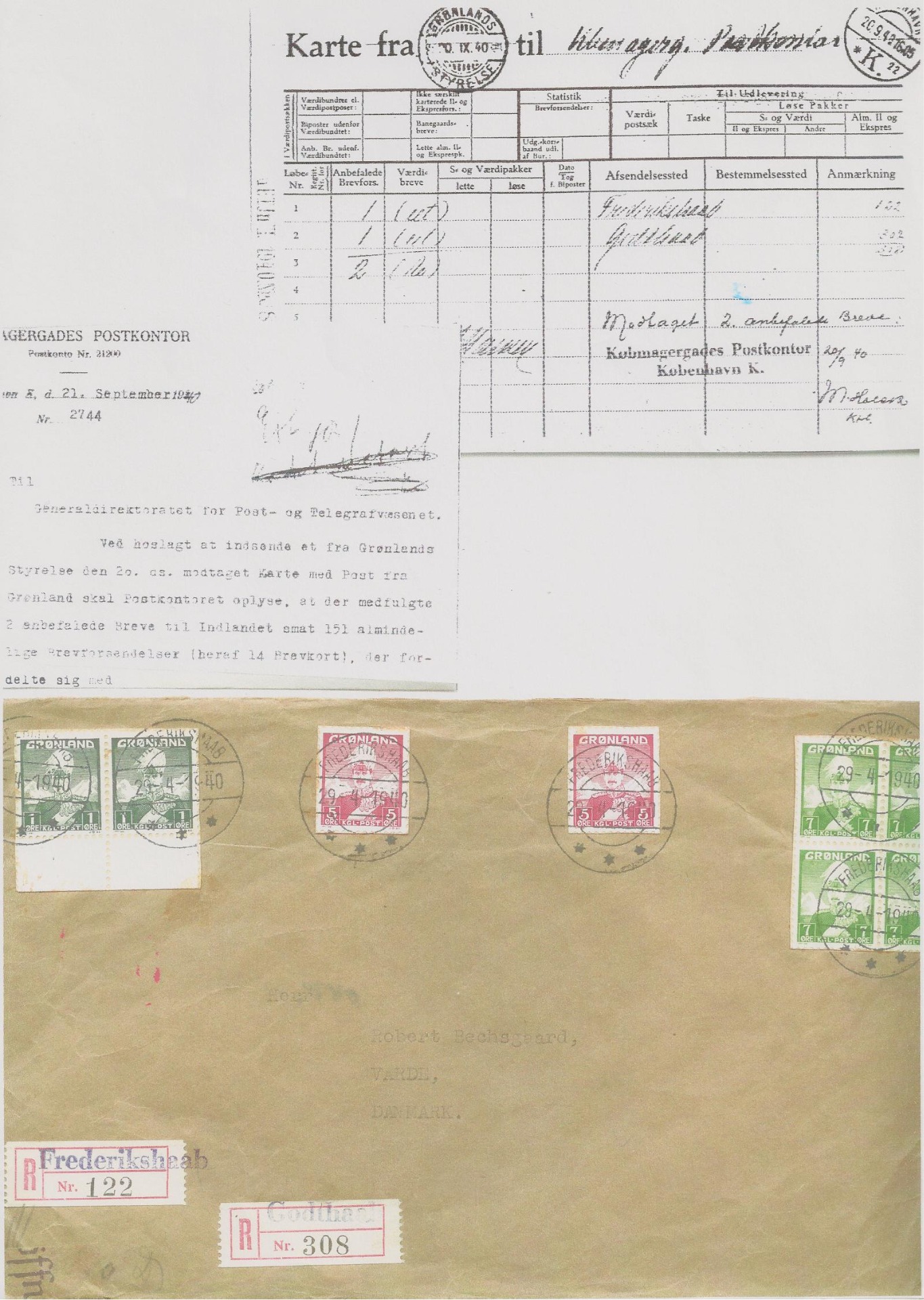 I forbindelse med indførelsen af frimærker 1938/40 skal der ske anbefalingsregistre-ring af post på de enkelte posthuse. Nogle måneder senere starter første ver-denskrig og stopper midlertidigt rutetra-fikken. Bemærk at karten med P&T's notater fra sept. 1940 omtaler 2 r-numre.