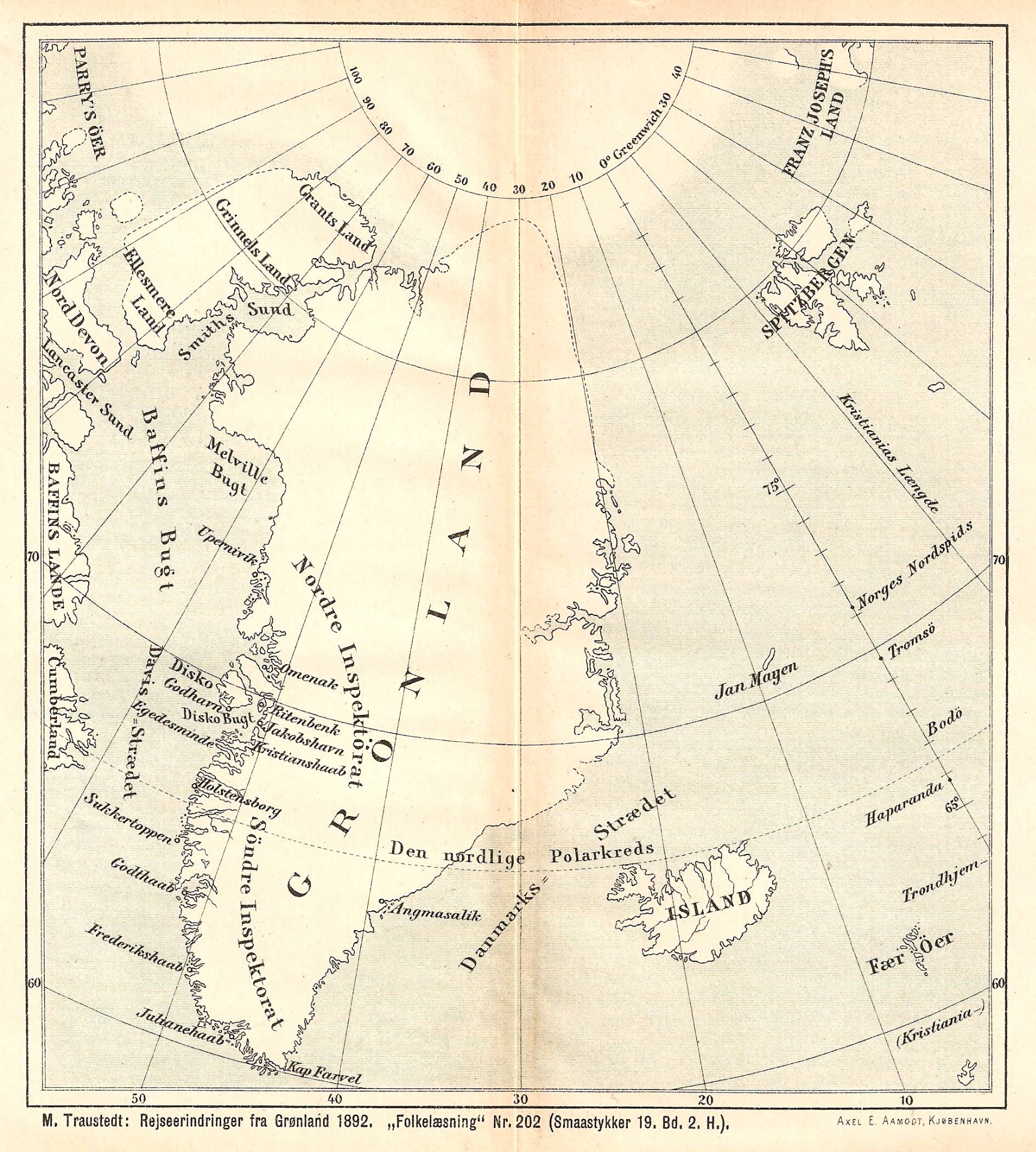 Kort fra 1892 hvor den nordøstlige del angives som ukendt område.