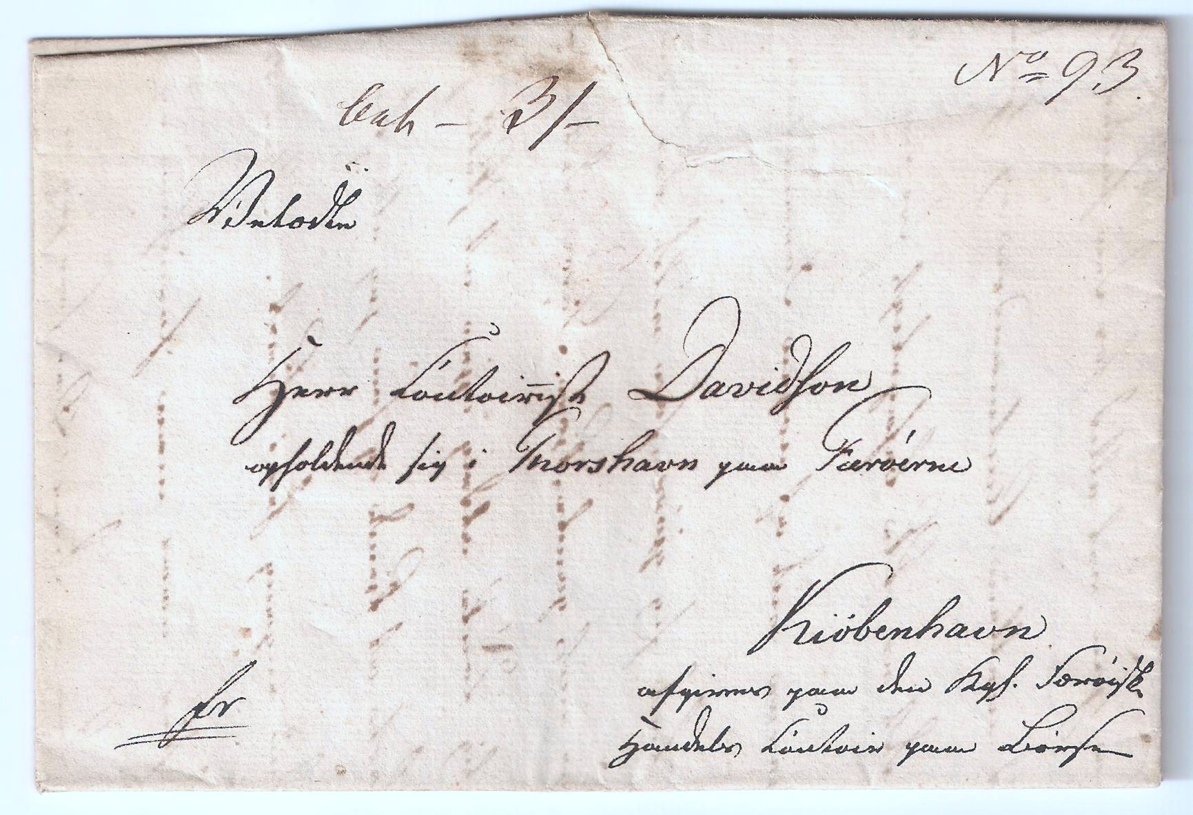 Brev dateret 184x hvor der til adressen er tilføjet, "afgives på den Kgl. Færøsk grønlandske kontor på Børsen.
