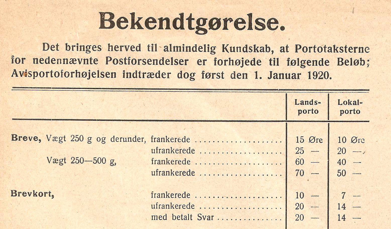 Oktober 1919 træder en ny danske posttakst i kraft.